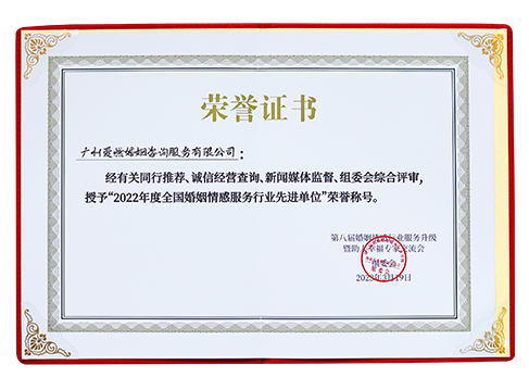 爱燃被授予2022年度全国婚姻情感服务行业先进单位